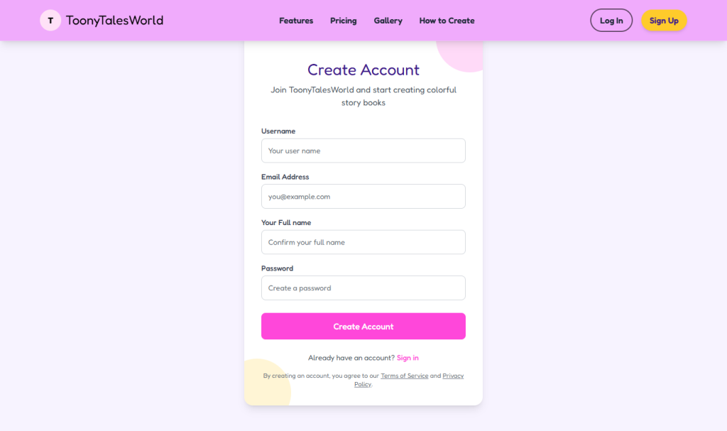 Step 2: Setting Up Your ToonyTalesWorld Account