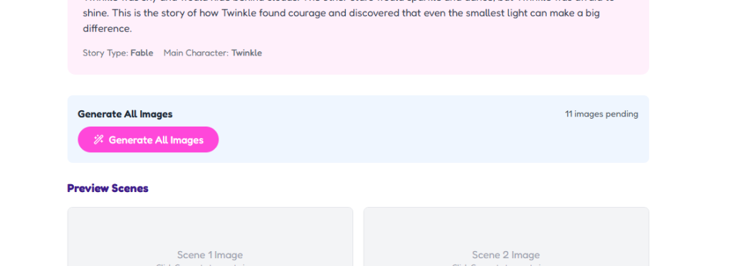 3. At this stage you can generate customized story book to include kids name, character, inside the the storybook to make it personalized or you can generate with the characters generated by our AI.