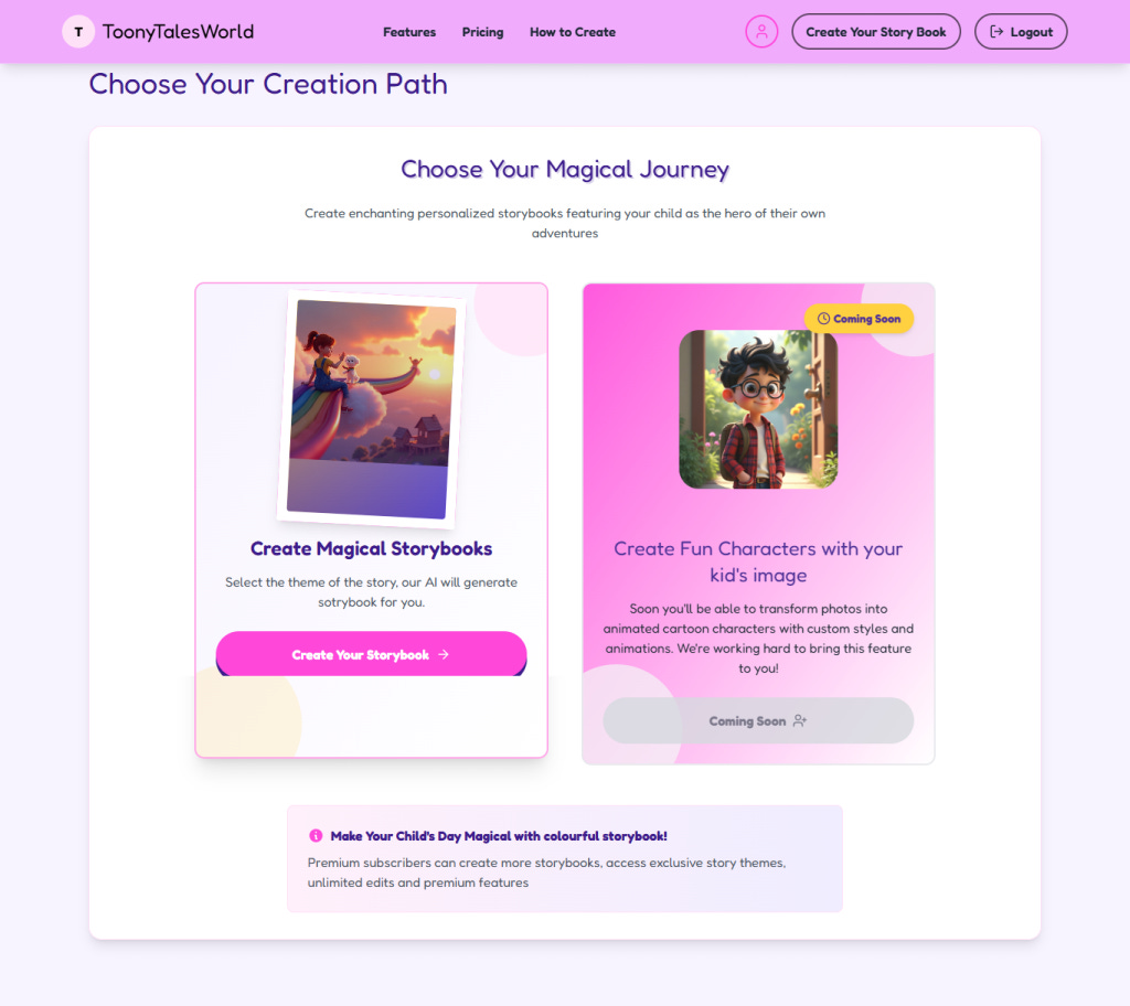 With ToonyTalesWorld, you can create multiple books efficiently: